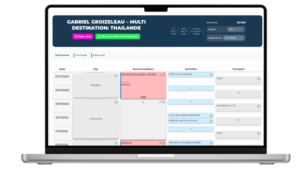 L’outil est intuitif et puissant. En quelques minutes, je construis des voyages sur-mesure qui séduisent mes clients.