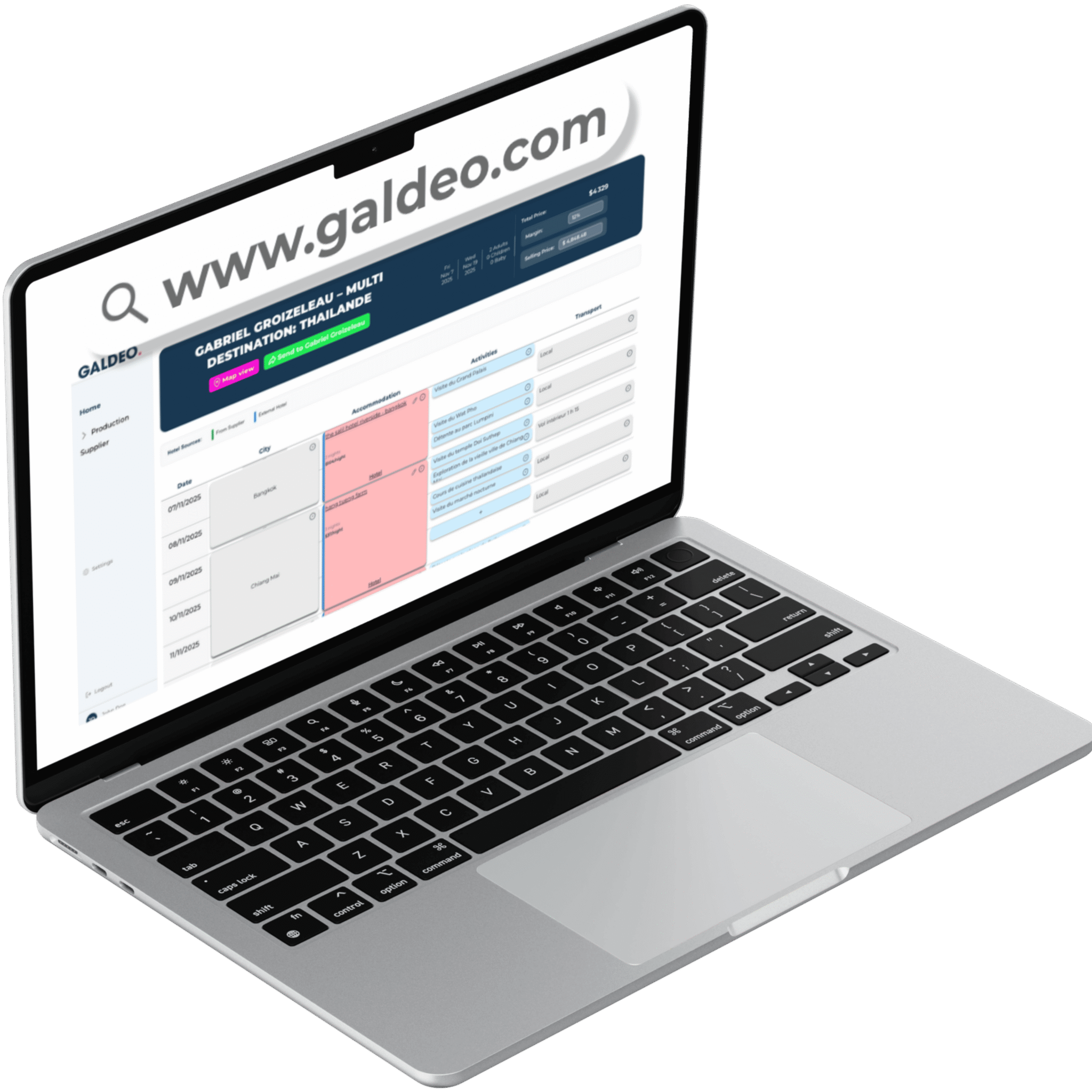 Galdeo génère des voyages personnalisés en fonction des préférences de vos clients et automatise toutes les tâches chronophages pour vous faire gagner du temps.